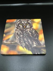 Single chunky owl coaster . 13 cm x 13 cm. Handmade and can also be used for vases and candle surface protector. Comes wrapped in tissue and ribbon.