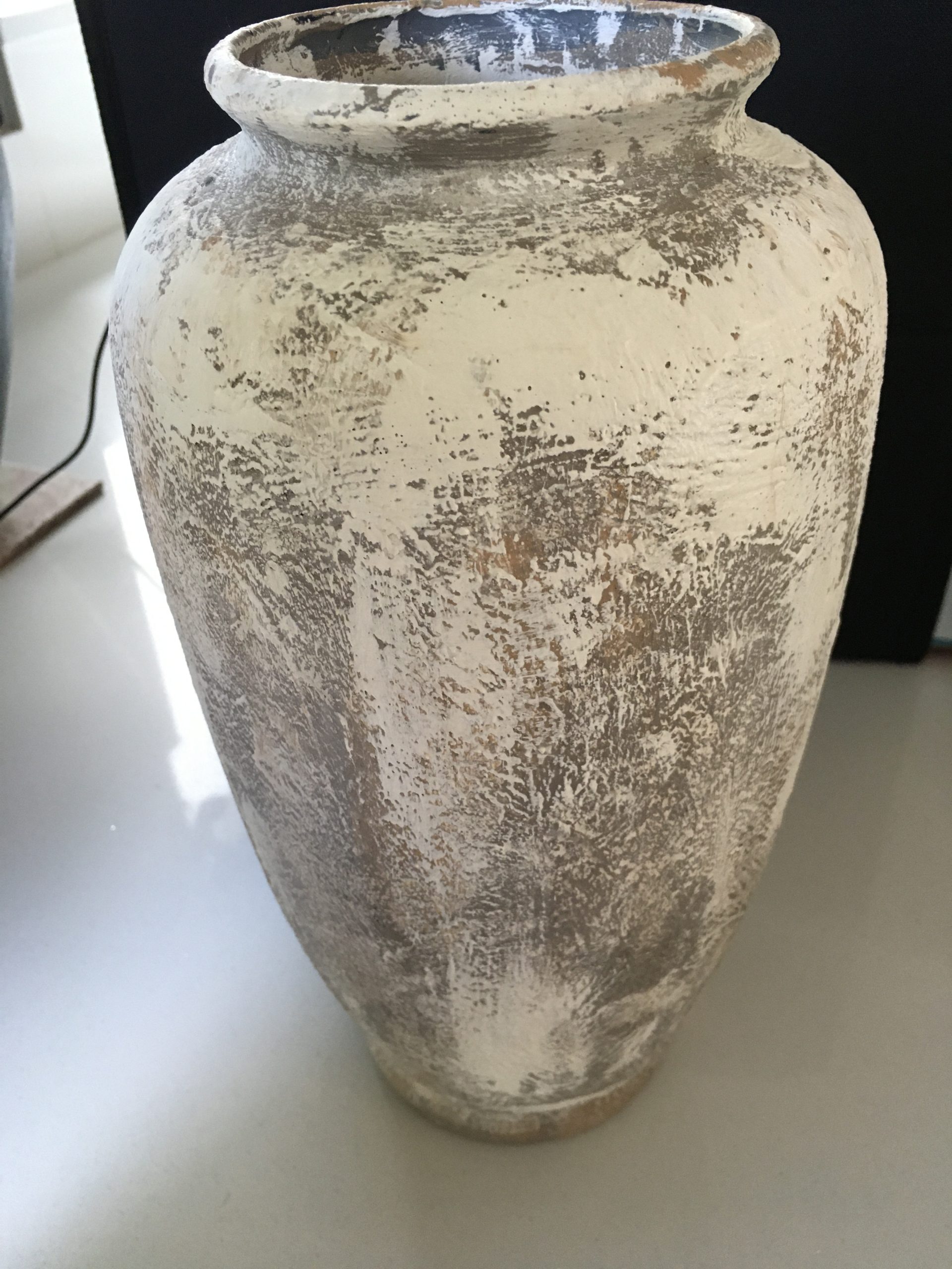 Aged vase Apollo. Size : height. 27cm diameter at top 9.5 cm, body of vase 13cm . We recommend this vase is used for faux flowers and greenery