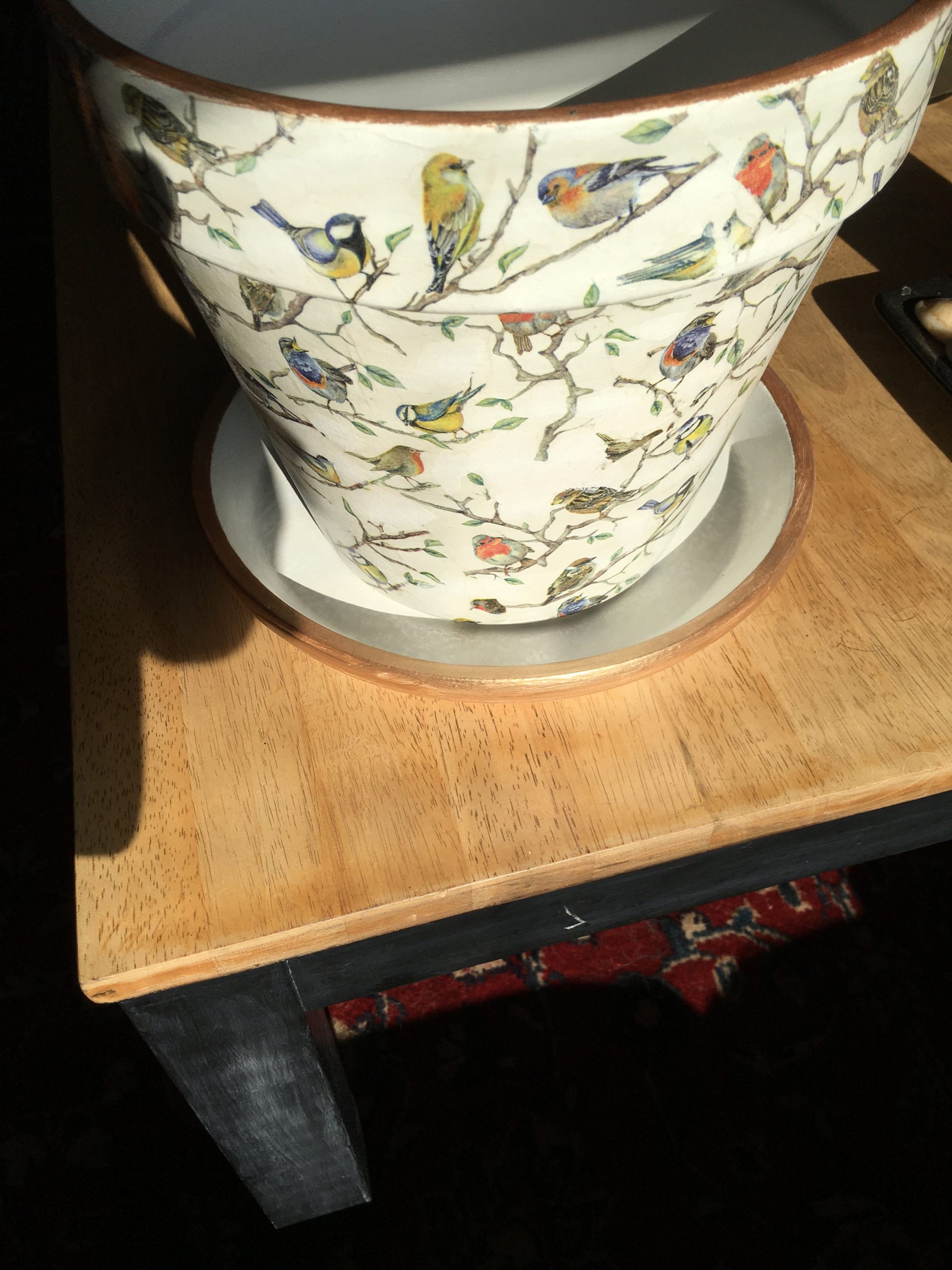 Extra large handmade terracotta British birds plant pot with saucer. Diameter 27 cm , height 24 cm