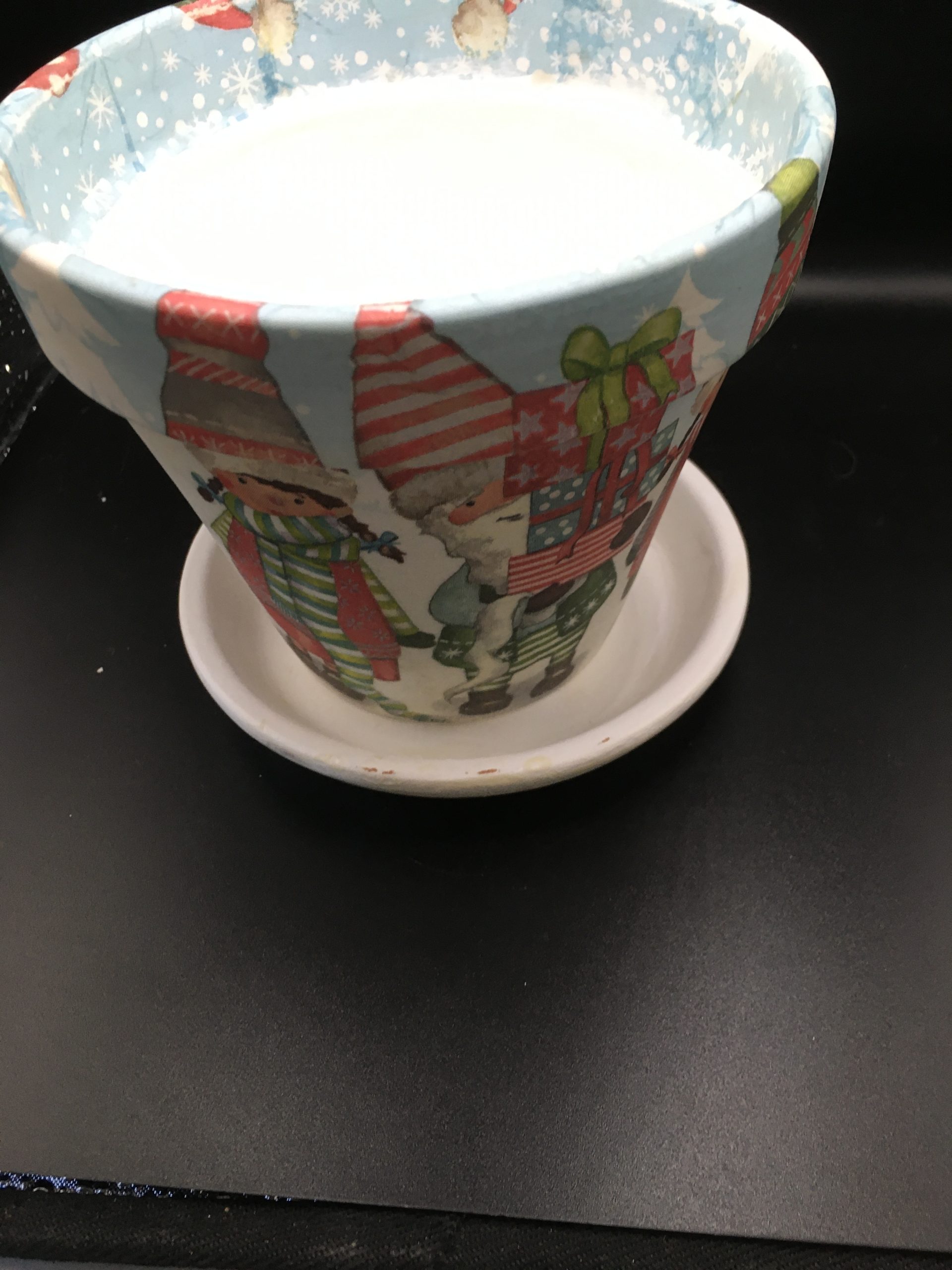 Handmade Christmas plant pot with saucer. Diameter 13 cm height 12 cm
