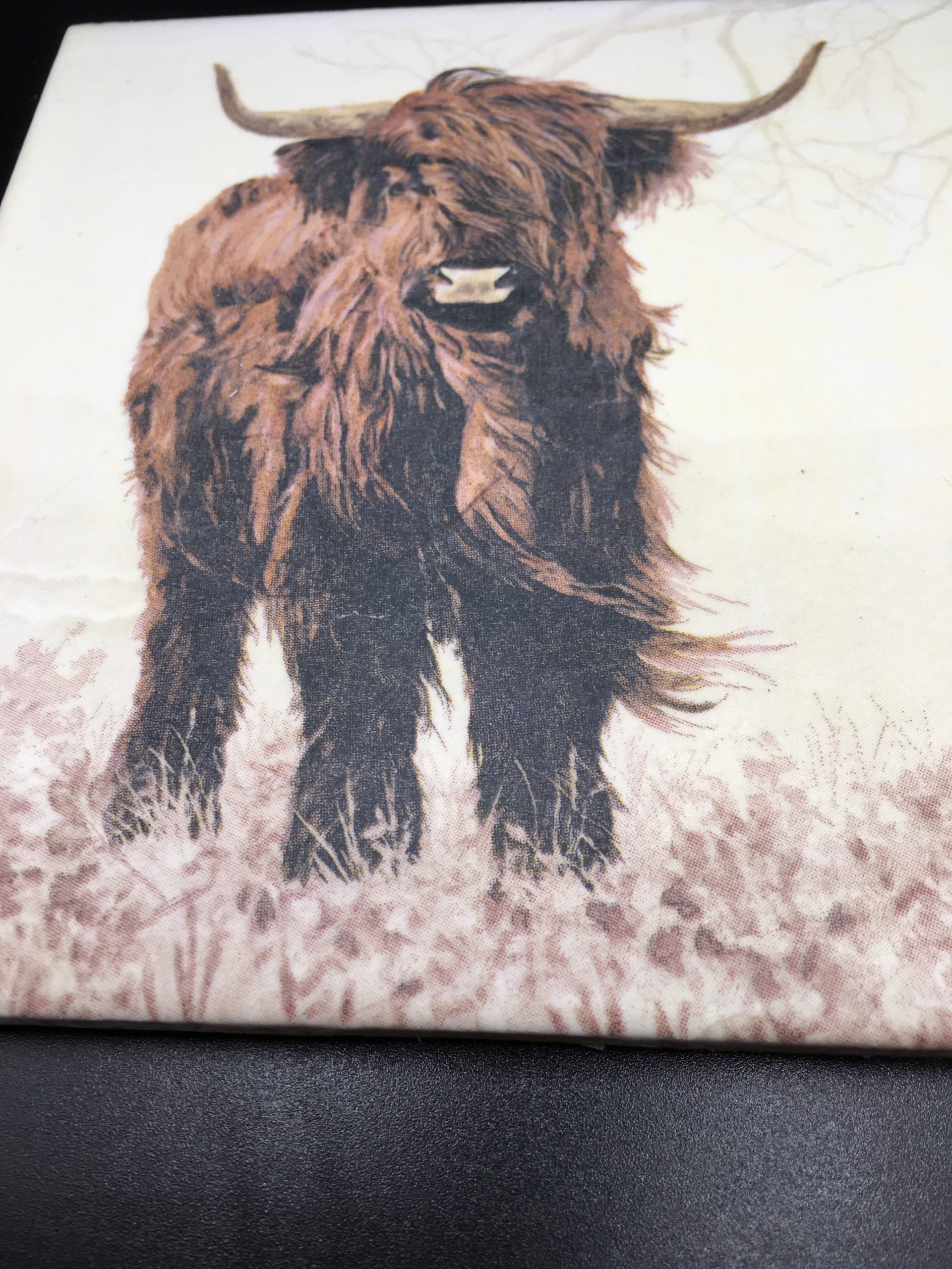 Single extra large coaster .15 cm x15 cm, features Henry the Highland coo.Hand made and comes wrapped in tissue with ribbon.