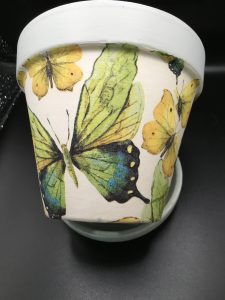 Hand made Lemon and lime butterfly terracotta pot. 13 cm diameter 12 cm high.