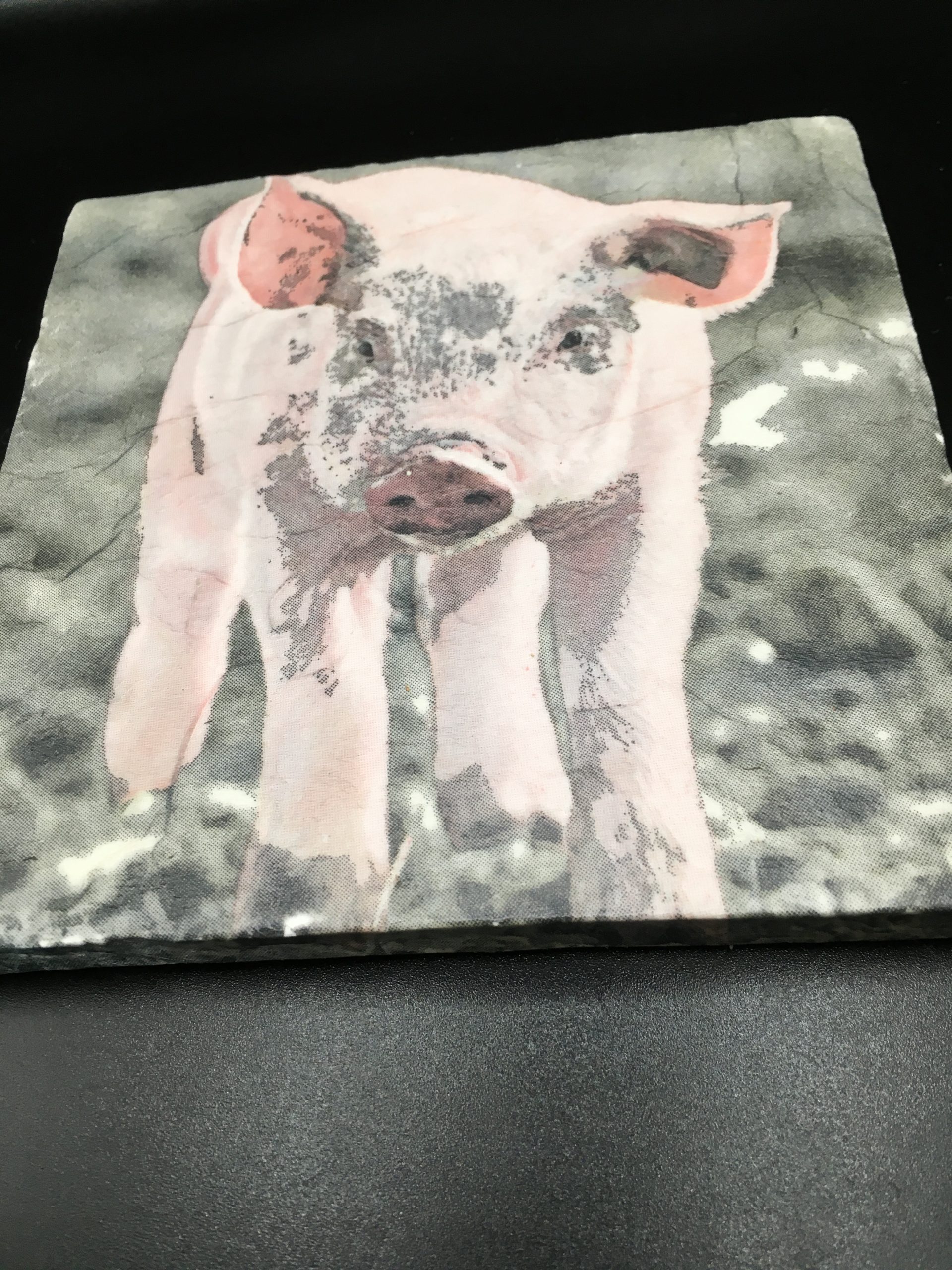 Single chunky pig coaster . Handmade, 13 cm x 13 cm. Comes wrapped in tissue with ribbon
