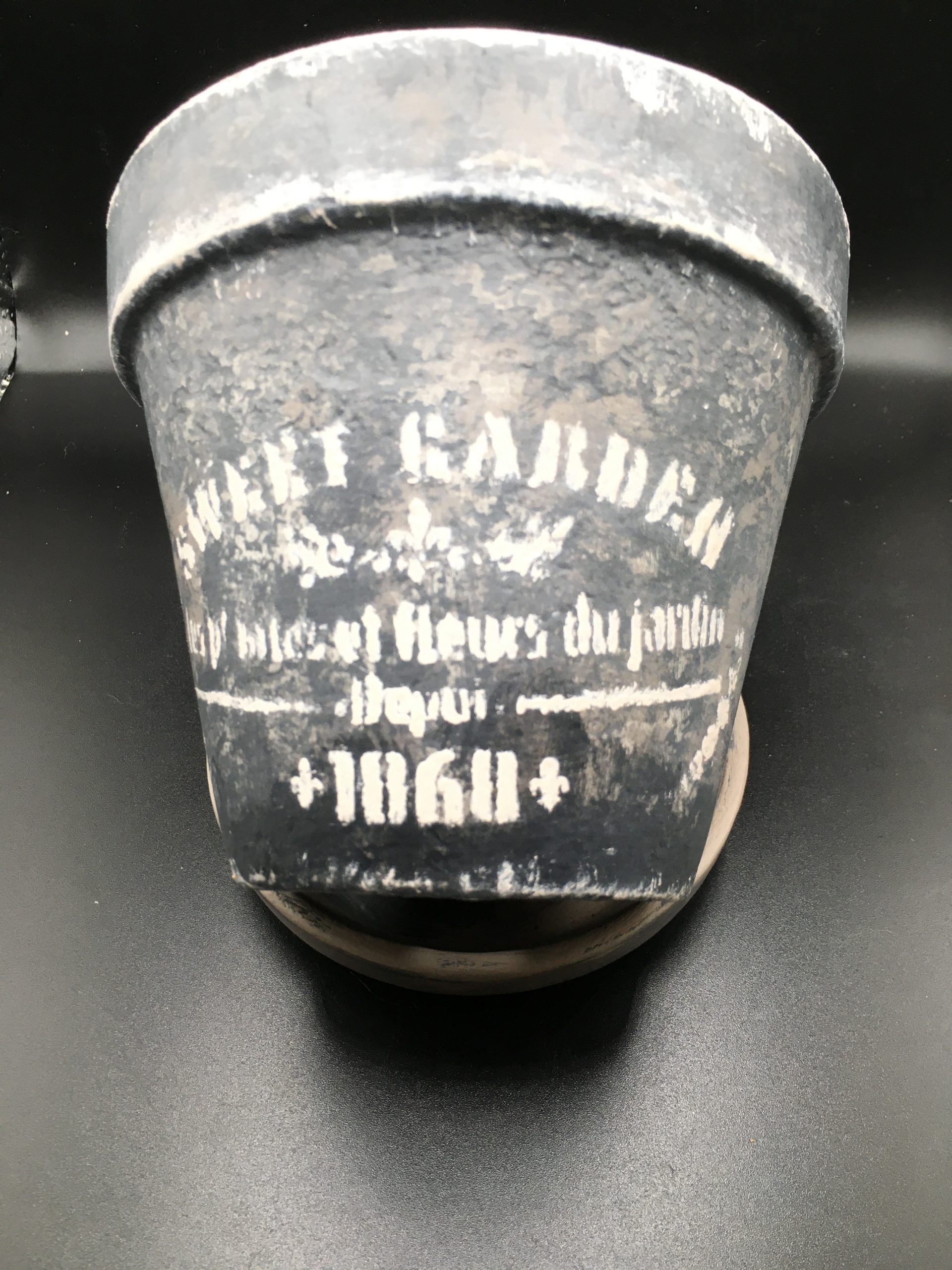 Handmade rustic terracotta pot with saucer.13 cm diameter 12 cm high.