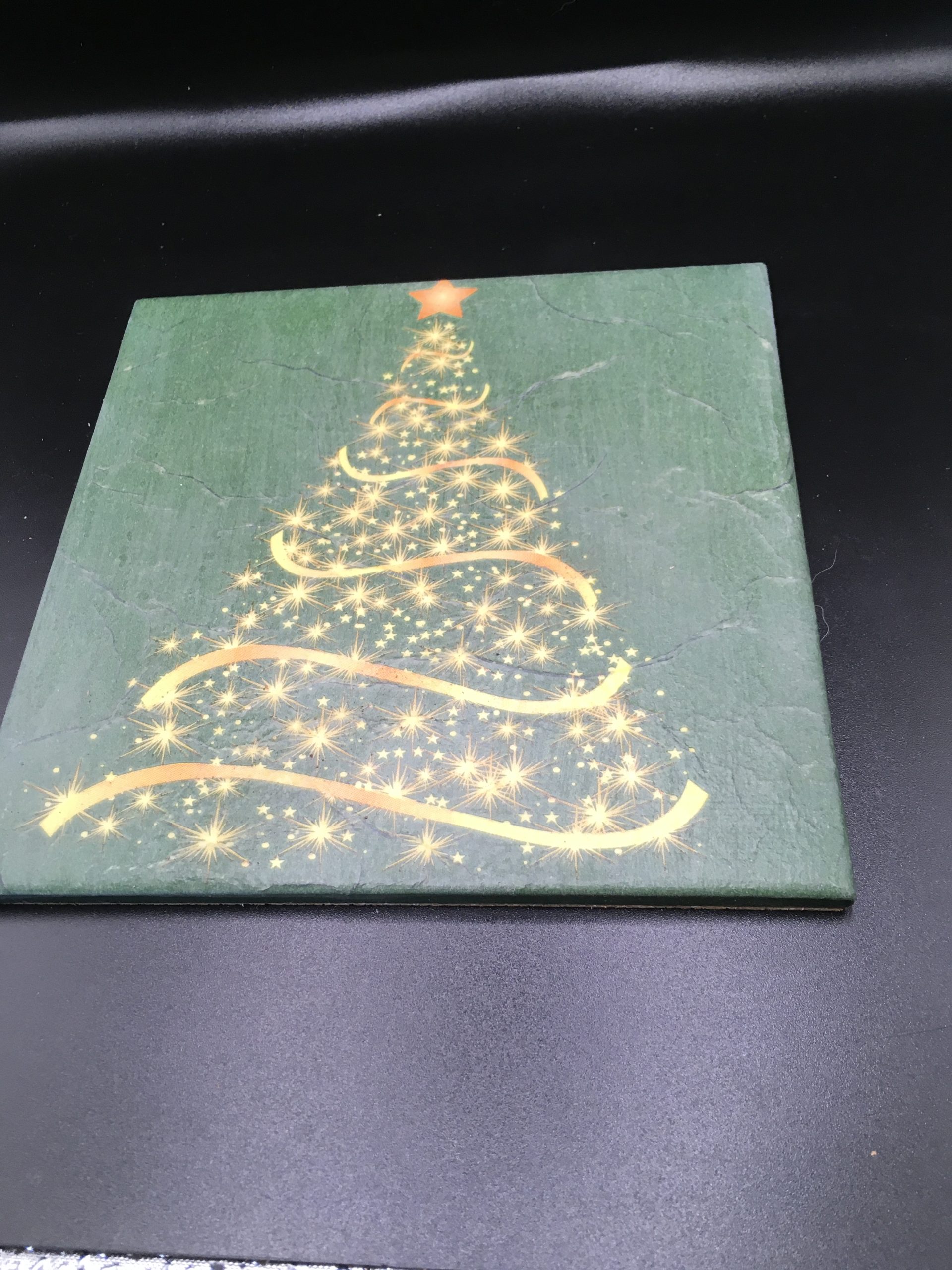 Single extra large Christmas tree coaster 15 cm x15 cm. Very limited stock. Comes in tissue with ribbon.